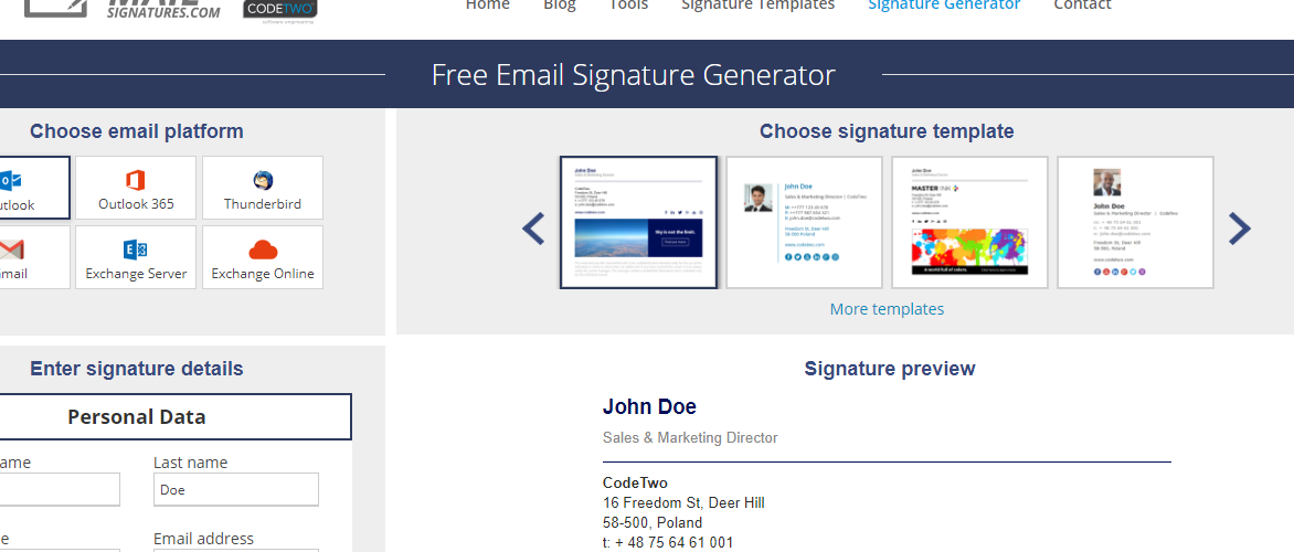 Mailsignatures.com enables the user to generate an email signature for any platform for free and also gives a wide range of templates to choose from.