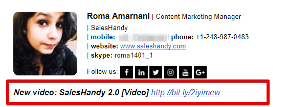 As mentioned earlier, a blog that describes your firm or your product line the best can be included in the signature. This will help engage the reader. You can try writing something interesting as an introduction to your blog which will induce the reader.