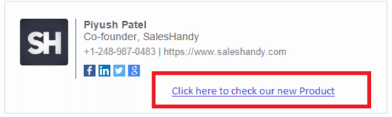 Now it is evident that your company will have profiles on various social media platforms. You can include these social media plugins in your signature. Now you also need to take care that the signature does not become too bulky. Hence, you can hyperlink various texts and can link them to your profiles.