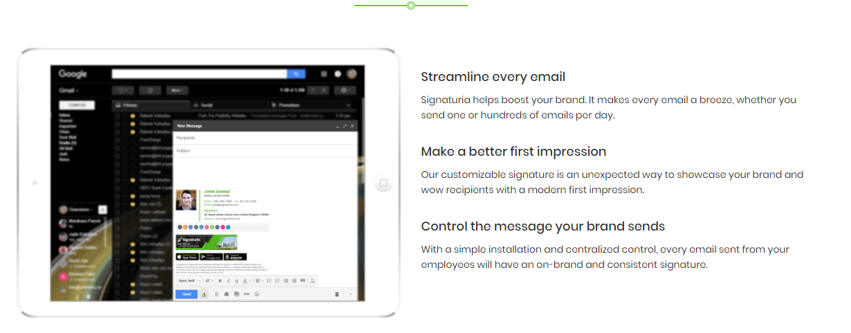 With a tagline of “Promote your company with every email,” htmlsig.com aims at boosting your sales.