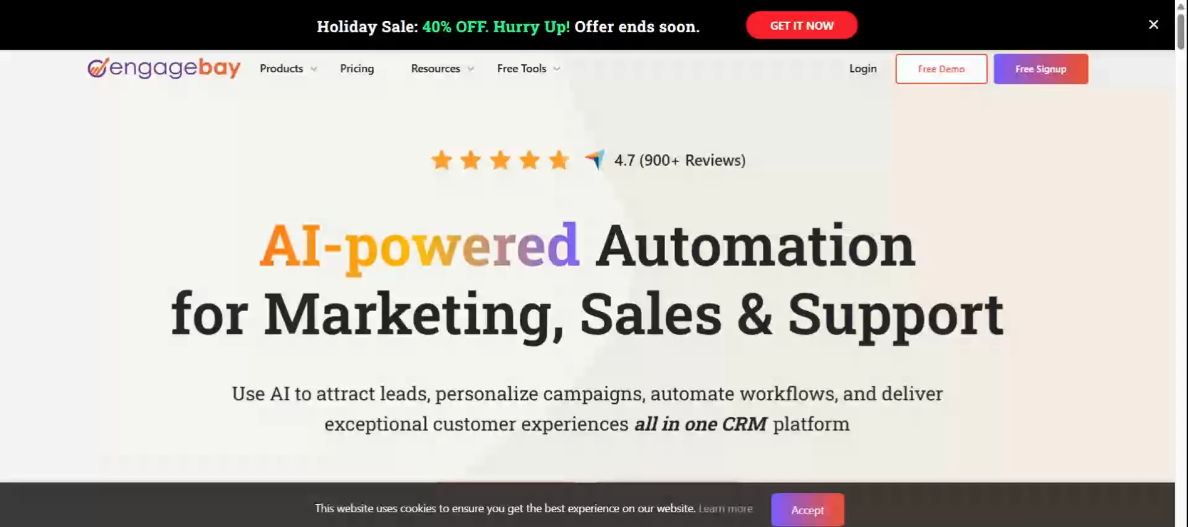 Flat 40% off on all EngageBay plans for first-time customers + 50,000 FREE email credits, your first campaign absolutely FREE (includes email template, landing page & content design), and FREE migration for HubSpot customers!