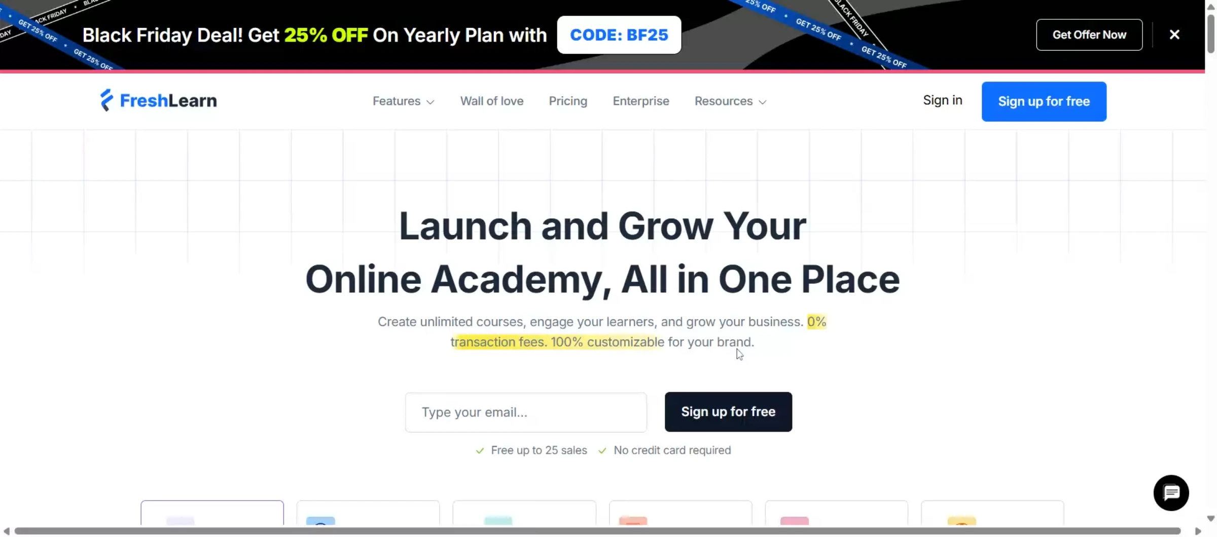 FreshLearn is an all-in-one platform for creators and businesses to build and sell online courses, digital products, memberships, and communities. It includes AI course creation, built-in email marketing, and zero transaction fees, making it a strong value for the price. FreshLearn is easy to use and backed by 24/7 human support, which is why it’s one of the top picks this year.