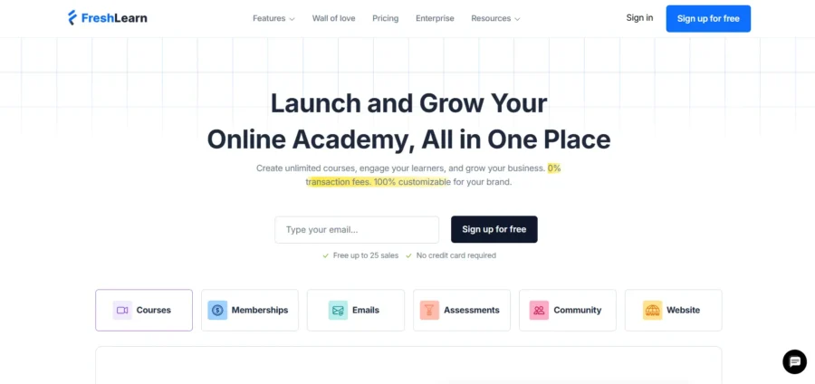 FreshLearn.com is an all-in-one course creation and knowledge commerce platform built for creators, coaches, and businesses. It helps you create, market, and sell online courses, digital products, and communities—without transaction fees. With powerful tools like live classes, email marketing, and learner engagement features, FreshLearn makes online education simple. Trusted by creators worldwide, it’s designed to scale your knowledge into a sustainable business.