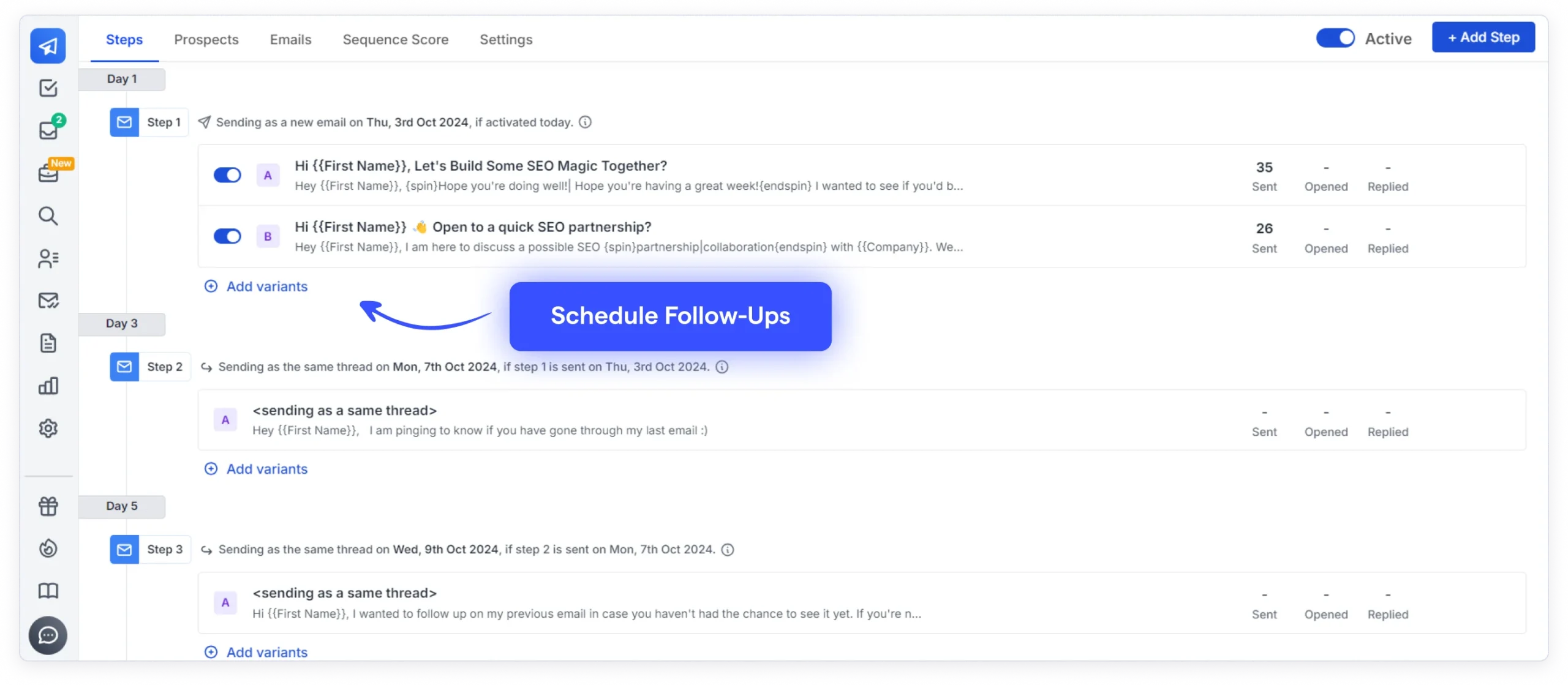 7. Schedule 2-3 follow up emails using the sequencing feature.