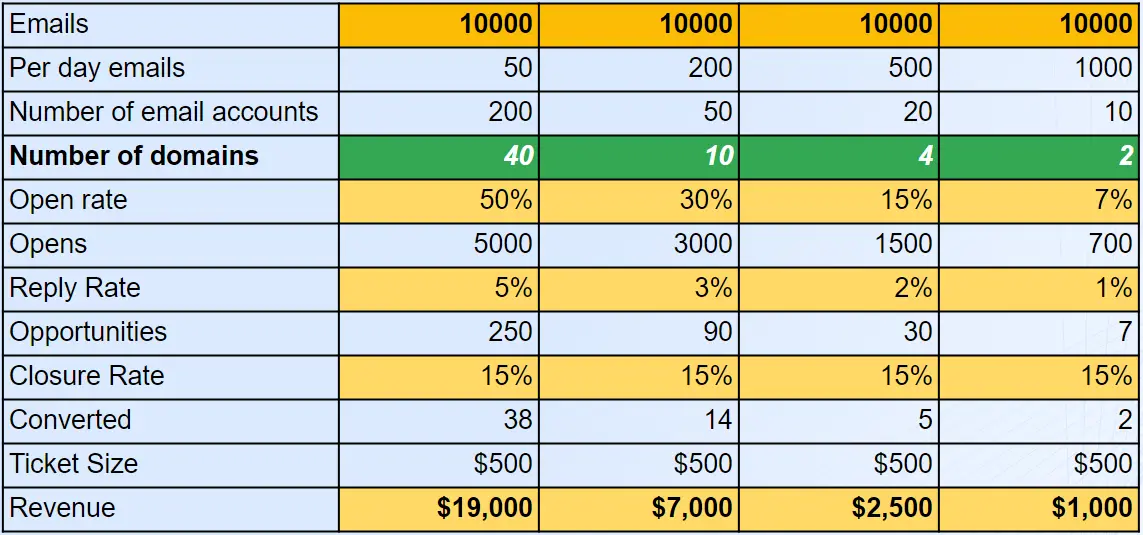 After understanding the need to buy multiple domains and email accounts, you need to ask yourself: How many prospects do you want to reach out to?