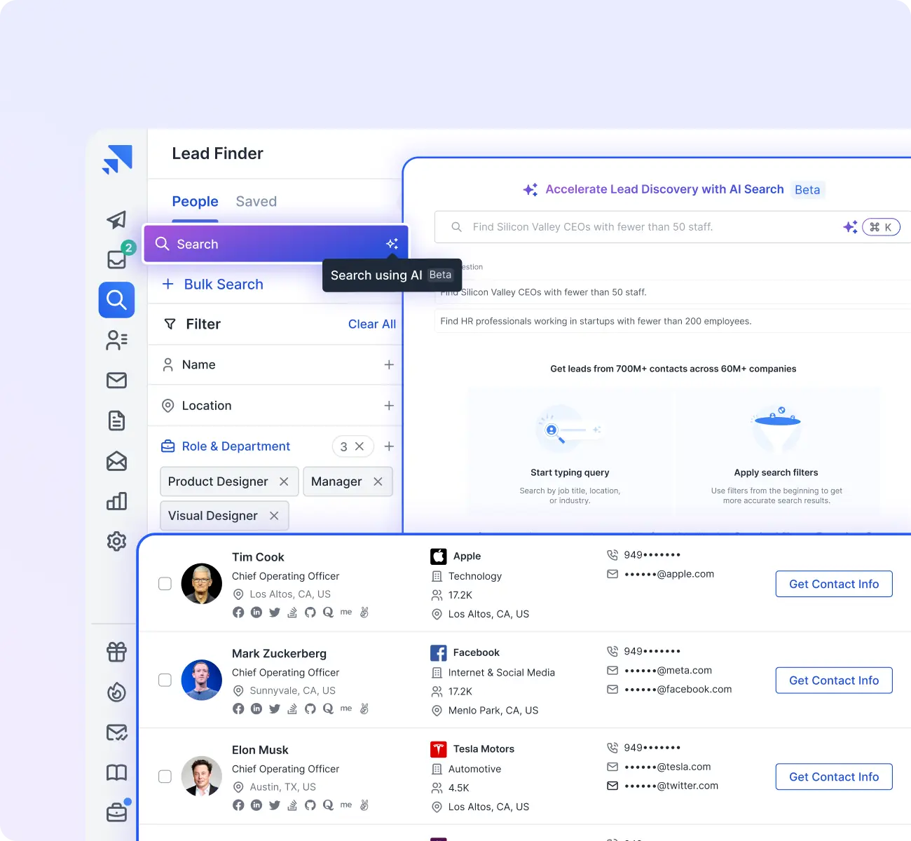 Target your prospects by getting their email address and phone number with the Saleshandy B2B Lead Finder.