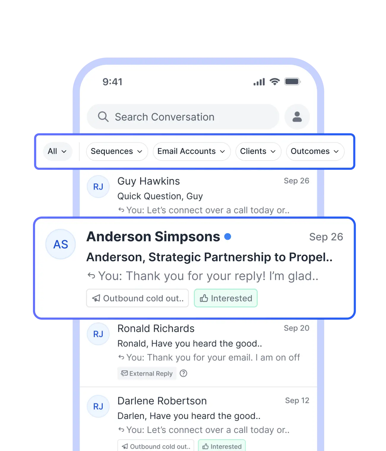 Mark the conversations as interested, not interested, and meeting booked to keep the leads updated